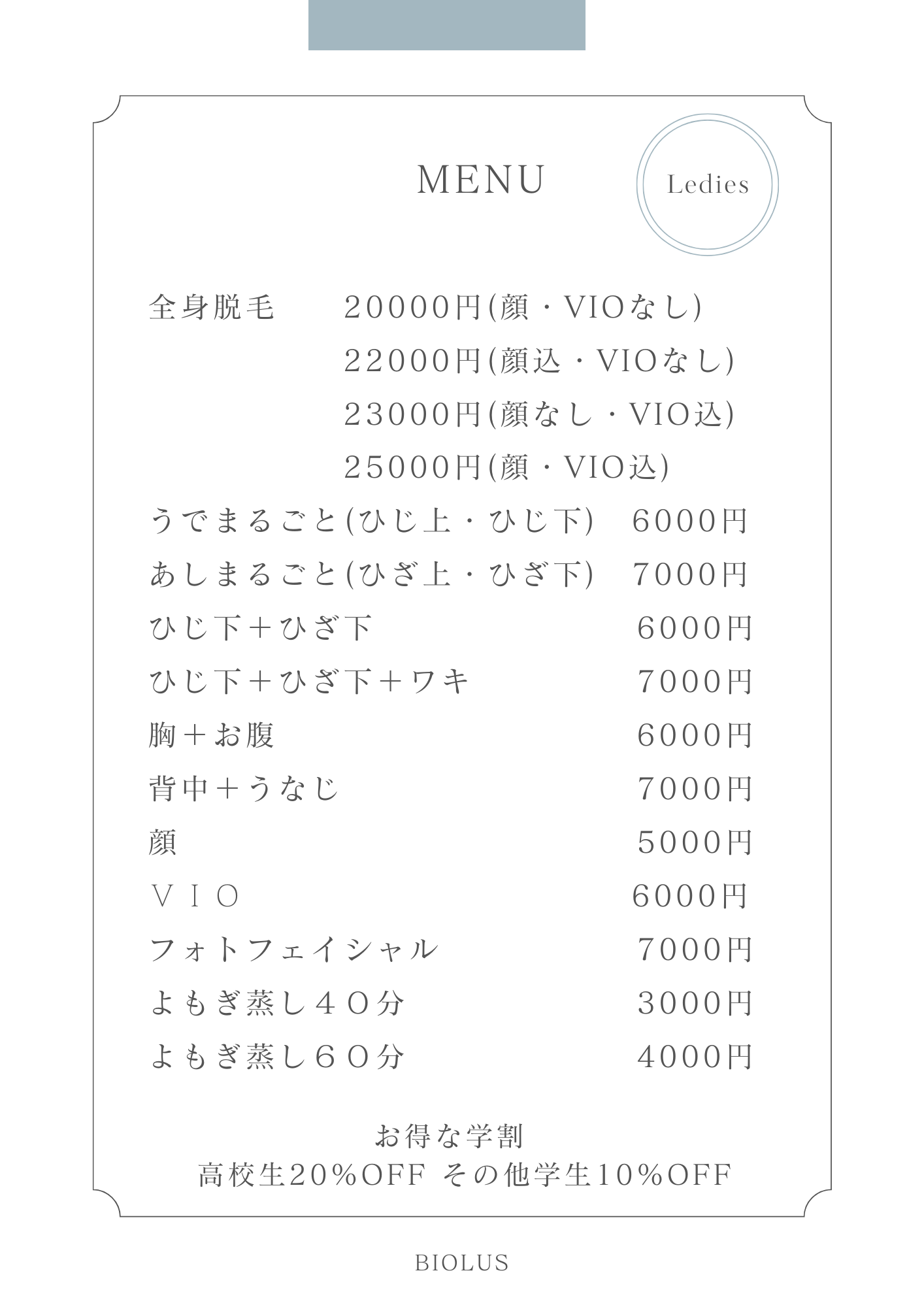 全身脱毛(顔あり・VIOなし)セット 6,000円
